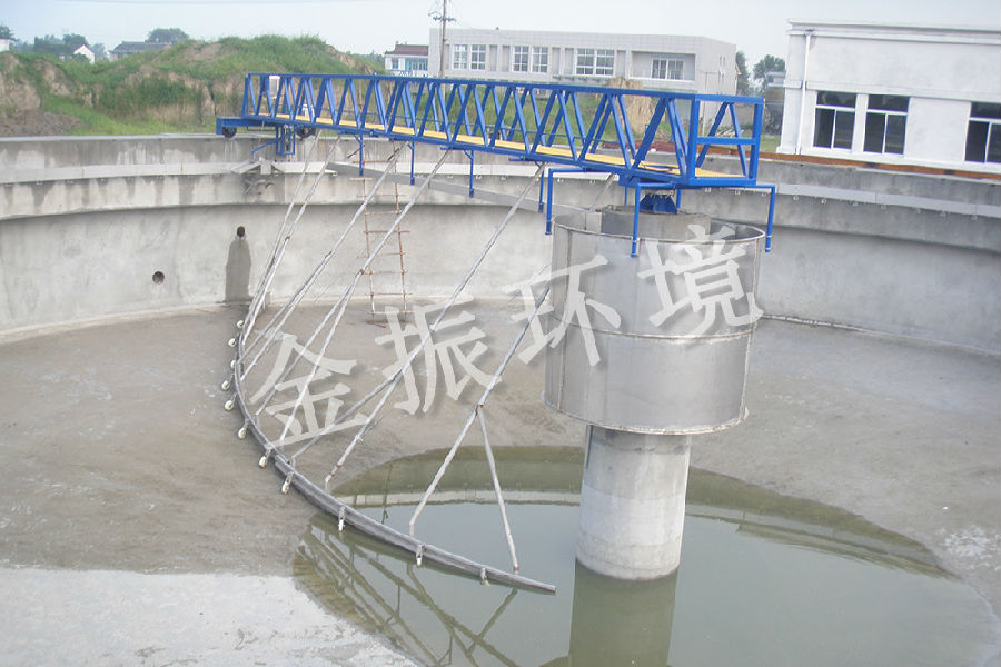 周邊傳動係列刮泥機用於汙(wū)水處理(lǐ)廠(chǎng)圓形沉澱池,將沉降在池底上的汙泥刮集至積泥坑,以便汙泥回流或濃縮脫水,並將(jiāng)池麵浮渣撇向集渣(zhā)鬥,通過浮渣(zhā)漏鬥(dòu)排出(chū)池外(wài),以便進一步(bù)處理。