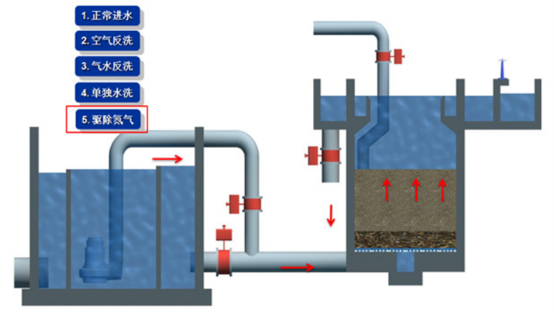 ◆反硝化深床濾池反衝洗:采用氣水聯合衝洗的方式;