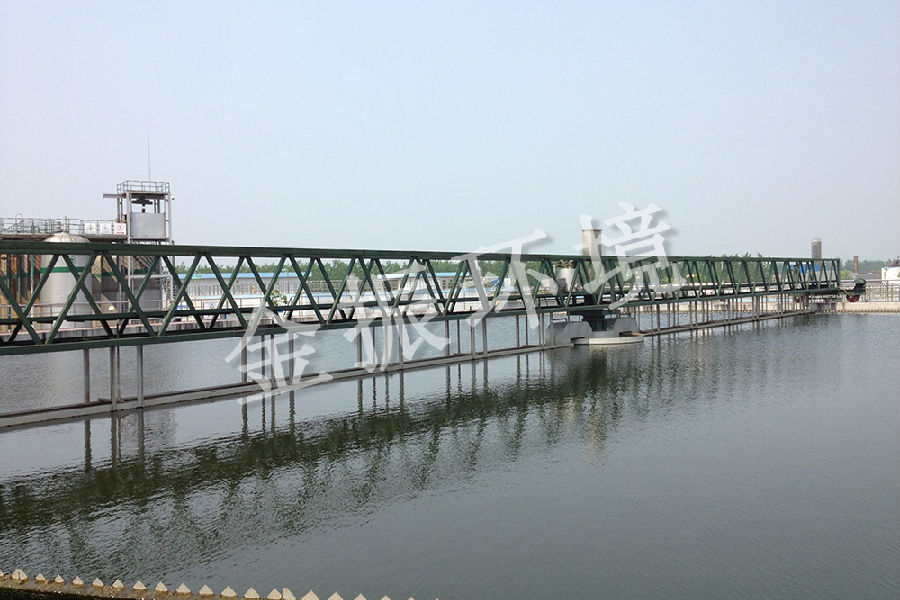 全橋(qiáo)式周邊傳動吸泥機適用於汙水處理廠幅流式二(èr)次沉澱池。其(qí)主要功能是將沉降在池底的(de)汙泥刮集至一組半徑方向布置的吸泥管管口,再(zài)通過(guò)中心排泥管排出,以便汙泥回流或濃縮脫水。視情況(kuàng)需要,還可以設置池麵刮渣機構,收集池麵浮渣(zhā)並(bìng)通過浮(fú)渣漏鬥排出(chū)池外。
