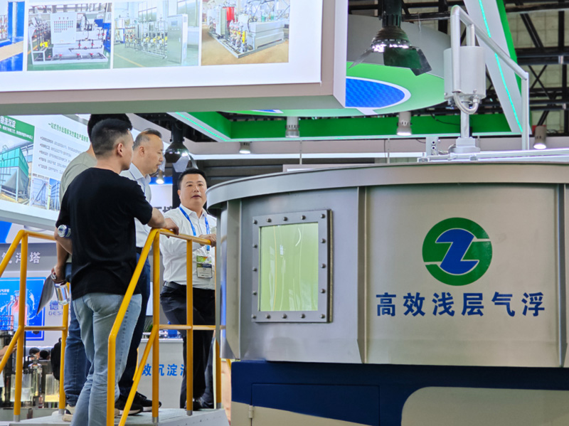 在W4館的水處理專題展區,我們的展位(展位號:W4-A18)憑借“高效沉澱反衝一體機”和“高效淺層氣浮機”兩款(kuǎn)核心產品,吸引了絡繹不絕的參觀者。許多客戶駐足(zú)詢問,甚至拿(ná)出手機(jī)拍攝(shè)設(shè)備模型和(hé)運行演示視頻(pín),現場技術團隊幾乎應接不暇。